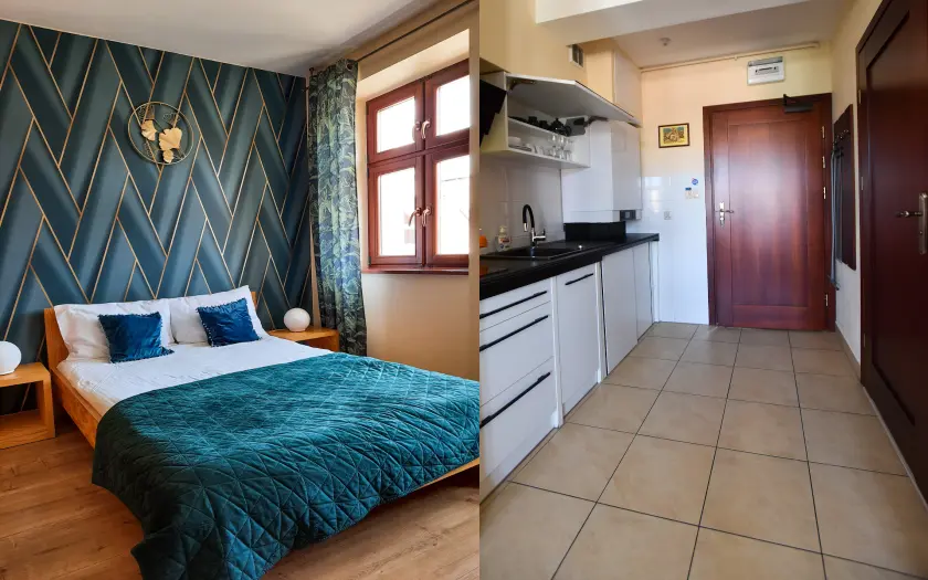 Możliwość korzystania z całego mieszkania, własnej kuchni oraz oddzielnej sypialni sprawia, że pobyt jest bardziej komfortowy niż w standardowym pokoju hotelowym.