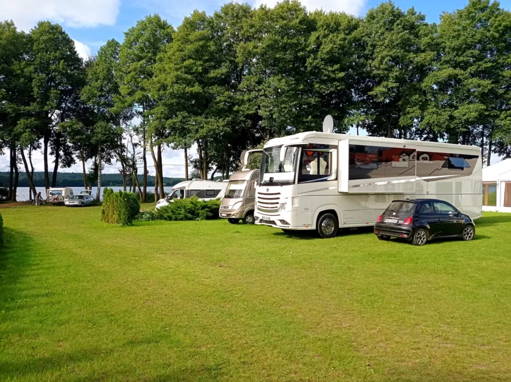 Rozległy teren ciągnący się wzdłuż Zatoki Kopernika pozwala znaleźć wygodne miejsce zarówno dla kampera, przyczepy kempingowej, jak i namiotu. Goście mają do dyspozycji pełen węzeł sanitarny, przyłącza elektryczne, plac zabaw, miejsce na ognisko oraz tarasy z widokiem na jezioro. W pobliżu znajduje się również pomost oraz wypożyczalnia sprzętu wodnego, co ułatwia korzystanie z atrakcji jeziora.